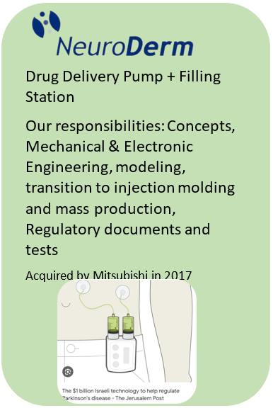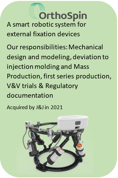 Typically, we lead our projects from the “Idea” stage, through Concepts, Mechanical and Electronic Design, Engineering and Solutions, Prototyping, Medical Trials, Regulations, Patenting, and Transition from Design to Manufacturing.