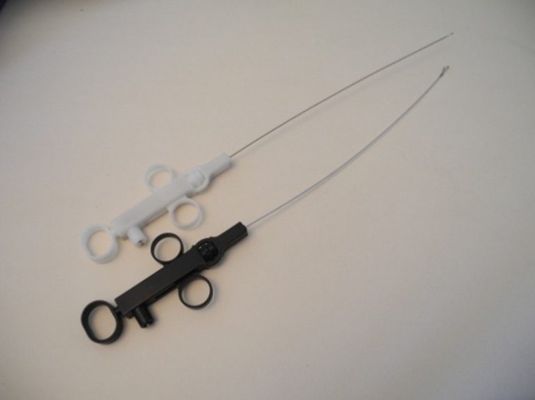 GI Mucosectomy Mono Polar Device, for use through a standard Colonoscope working channel. Proximal manipulation enables spreading the distal end to form a “loop” and enables rotating to Resect and Cogulate the Tissue.